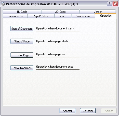 También se puede habilitar desde Windows mediante el Driver en la "ventana de Propiedades de la Impresora" haga clic en el botón "Preferencias de impresión" y luego en la pestaña "Operation", después clic en el botón "Start Document" y por último clic en la opción "Herald" y seleccione "Enable". Como muestran las imágenes a la derecha.